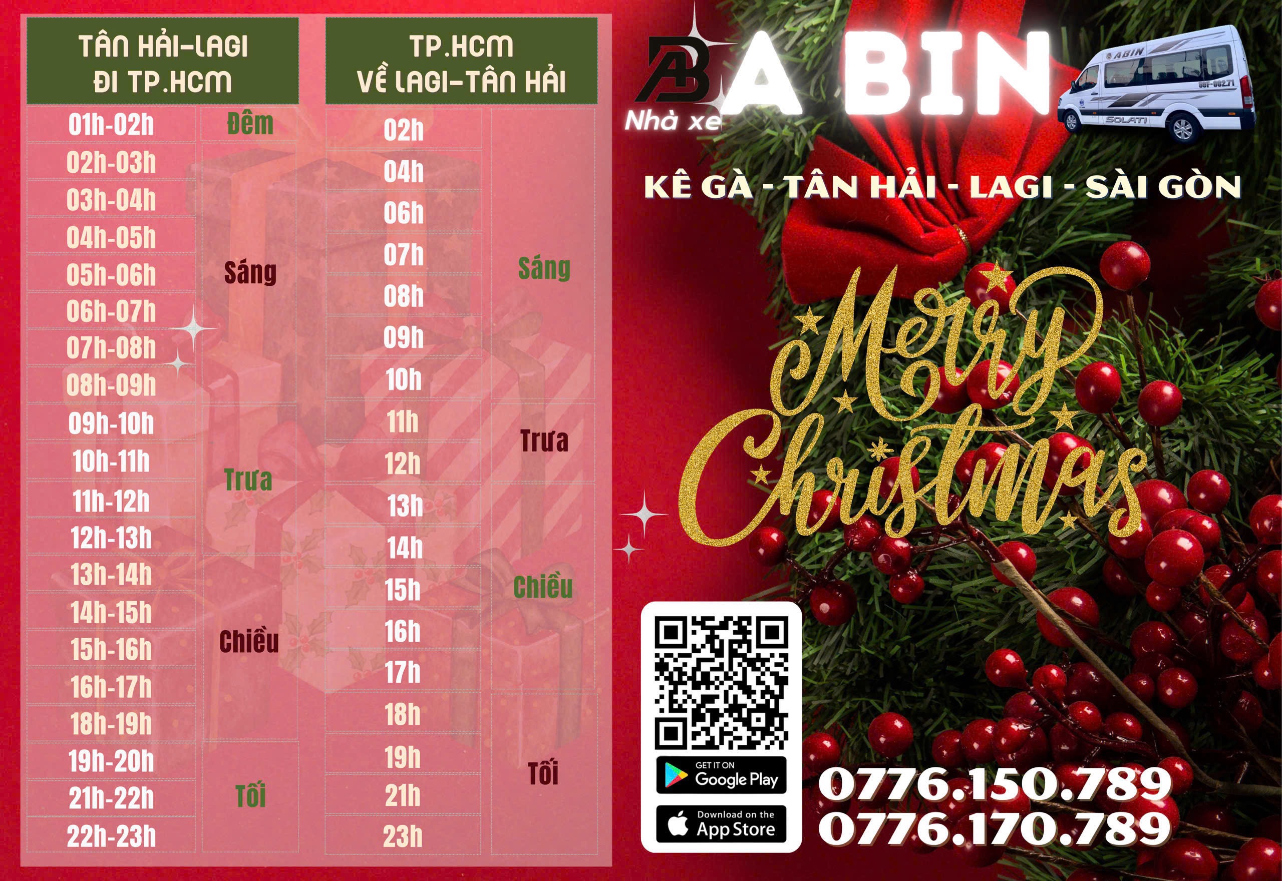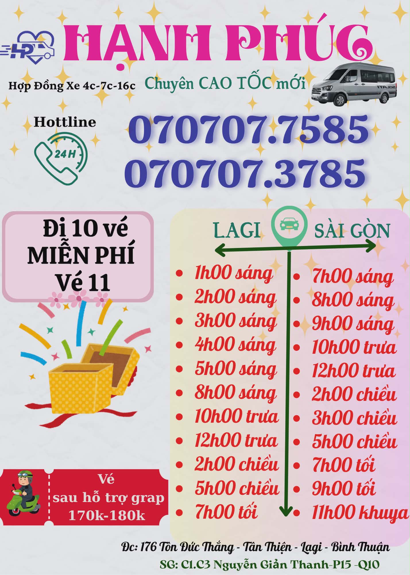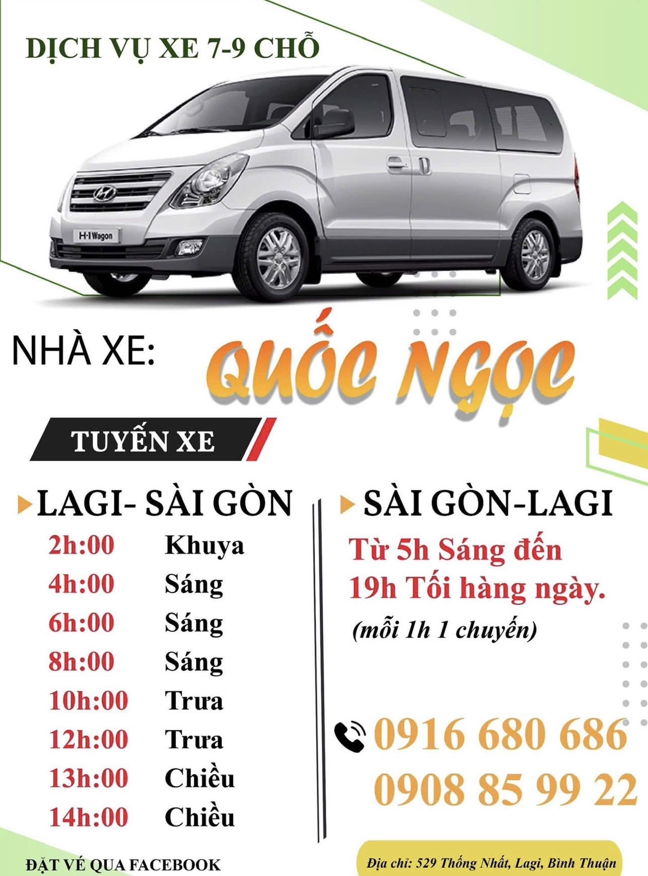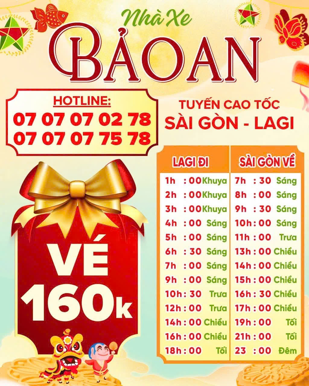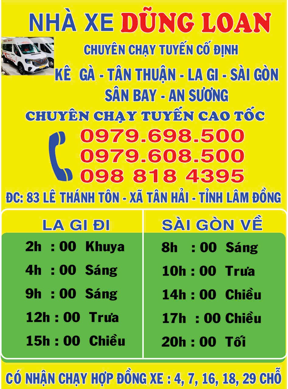 • Sài Gòn → Lagi: ⏰ 9h – 10h sáng | 11h – 12h trưa